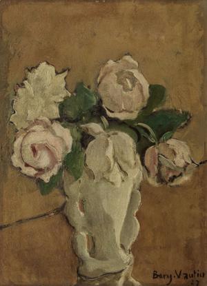 Chardons dans un pot, huile sur carton, signée et datée 48, 36x2...