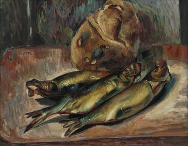 Nature morte aux poissons, huile sur toile signée, 37x46,5 cm