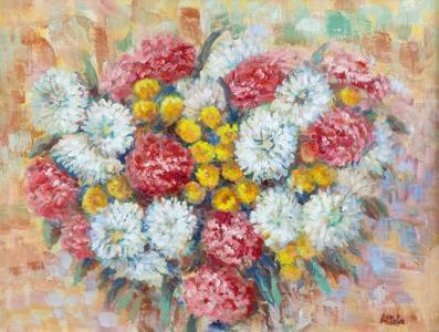 Bouquet de fleurs, huile sur toile, 32x18 cm
