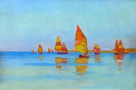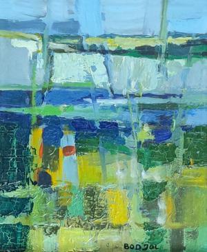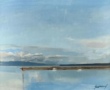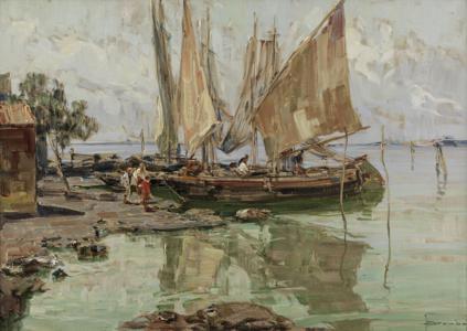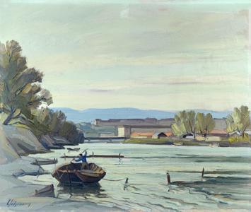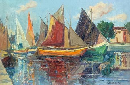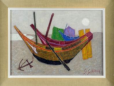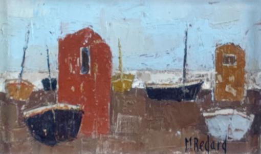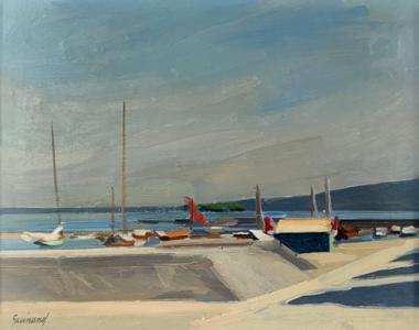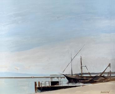 Bateaux sur la berge, huile sur toile, 50x70 cm