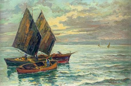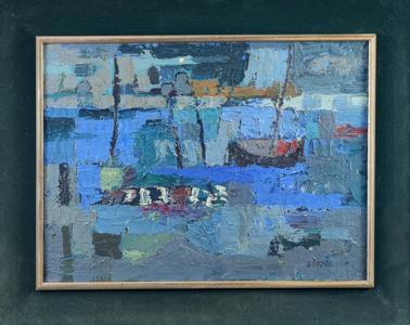 Bateaux, huile sur panneau, signée, 32x40 cm