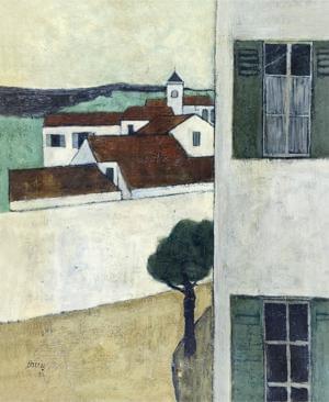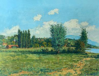 Vue de Cologny, huile sur toile, signée, 44x63 cm