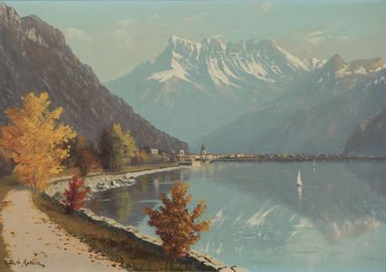 Vue du lac Léman, huile sur toile, signée, 54x65 cm.