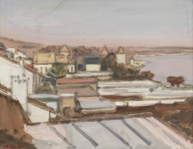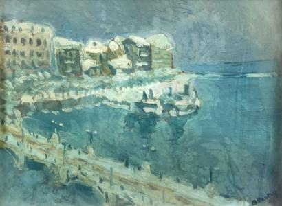 La rade du Golfe Juan, huile sur carton, monogrammée et datée 8...