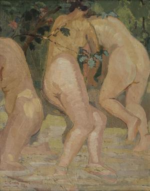 Trois baigneuses, huile sur toile, signée et datée 1917, 40x32 c...