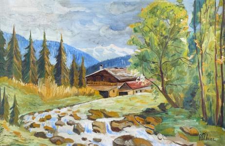 Maisonnette, huile sur toile, signée, 50x65 cm
