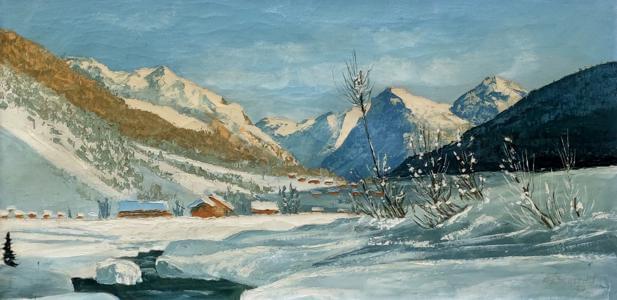 Paysage enneigé, huile sur toile, signée E. Braillard, 30x58 cm