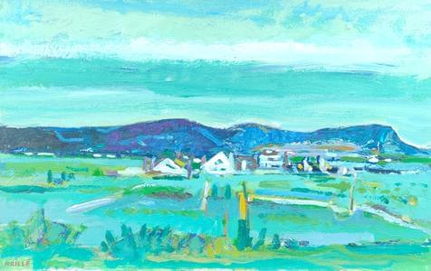 Vues du lac, deux huiles sur carton, 13x22 et 24x18 cm