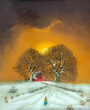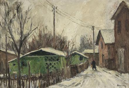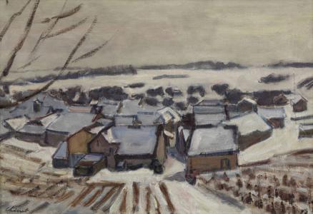 Chemin en hiver, huile sur toile, signée et datée 44, 37x55 cm