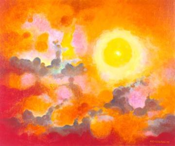 Ciel de crépuscule, huile sur panneau, signée H. Sinisterra, dat...