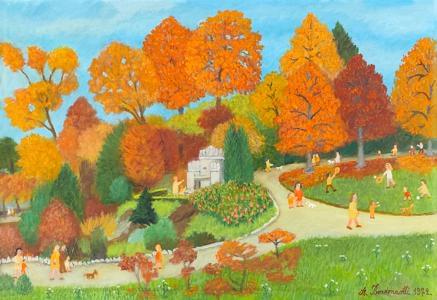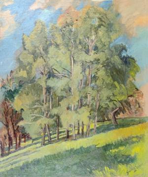 Arbres dans un parc, huile sur toile signée, 46x38 cm