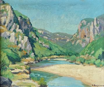 Vue de montagne, huile sur panneau, signée A. Pellarin, 16x25 cm
