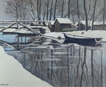 Canal en hiver, huile sur toile signée, 60x74 cm