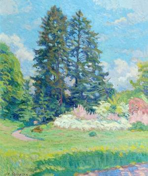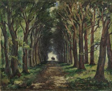 Allée d'arbres, huile sur toile, signée et datée 1935, 60x73 cm