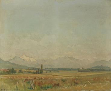 Paysage, huile sur toile, signée et datée 1932, 66x54 cm