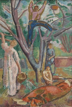 Le ramassage des cerises, huile sur toile, 35x25 cm