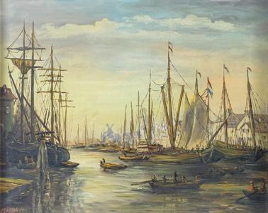 Le port d'Amsterdam, huile sur toile, signée Wener, 40x50 cm