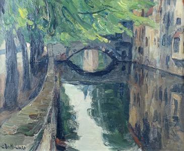 Le pont Meebrug, huile sur panneau, signée, 40x48 cm
