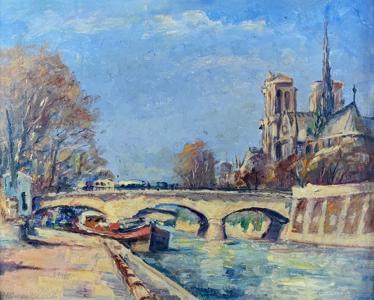 Notre-Dame de Paris, huile sur toile, signée H. Op de beck, 32x4...