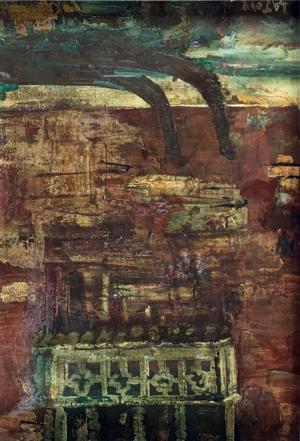 Les fleurs du deuil, huile sur carton marouflée sur isorel, 50x7...