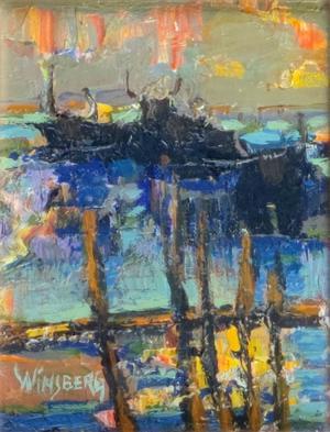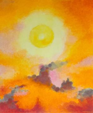 Ciel de crépuscule, diptyque, huiles sur panneaux, signées H. Si...