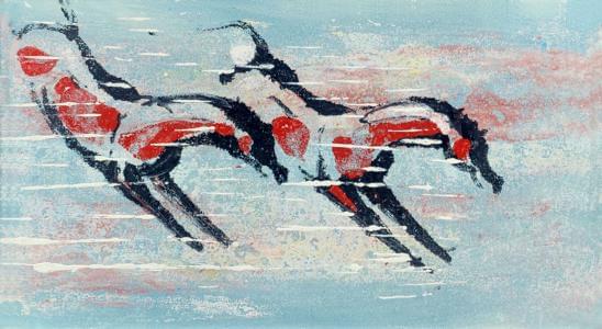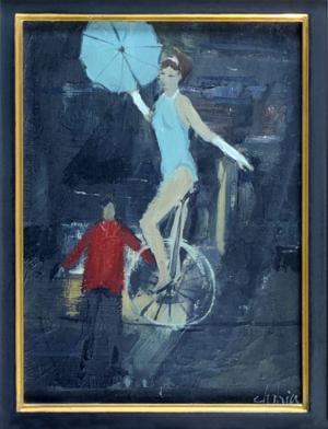 Accrobates, huile sur papier marouflée sur toile, signée, 61x46...