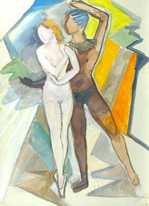 Etude de danseurs, huile sur toile monogrammée, 65x54 cm