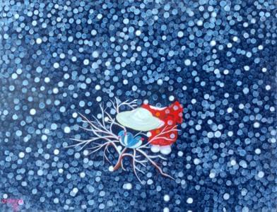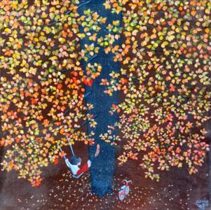 Sur la balançoire avec l’écureuil, acrylique sur toile, signée,...