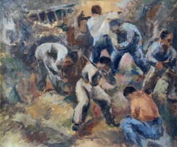 Mineurs, huile sur carton, 35x40 cm
