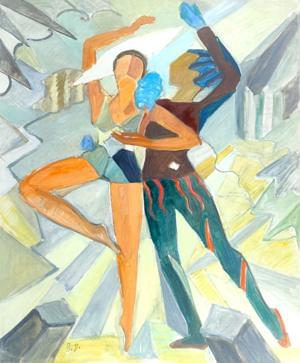 Couple dansant, huile sur toile, 61x50 cm