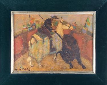 Le toréador et le taureau, huile sur toile, 50x60 cm