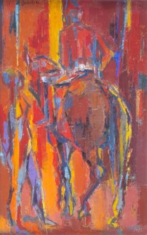 Cavalier et femme, huile sur panneau, 33x20,5 cm