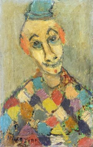 Clown, huile sur toile, signée, 40x25 cm