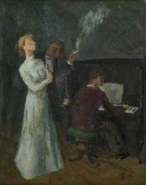Le concert 48-49, huile sur panneau, titrée au dos, 50x40 cm