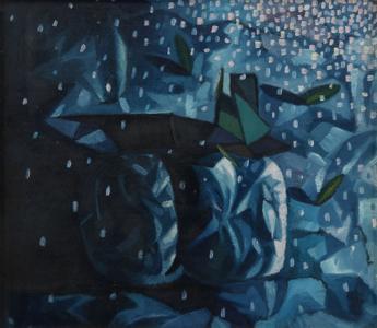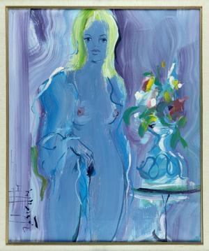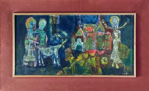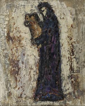 Offrande, huile sur papier, signée, 65x48 cm. Exposée en 1986 au...