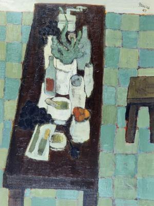 Le dîner à Mouries, huile sur toile, signée et datée 62, 100x41...