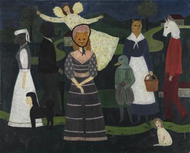 Personnages zoomorphes, huile sur toile, 81x100 cm