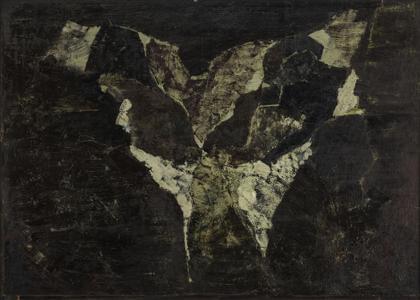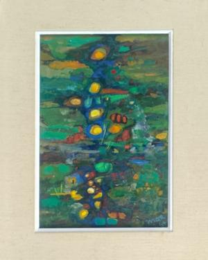 Motif forestier V, huile sur pavatex, monogrammée et datée 64, 3...