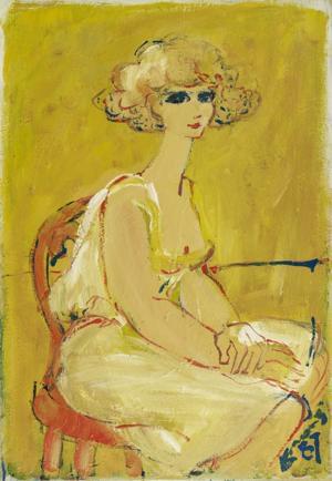 Femme sur fond jaune, huile sur panneau, 73x50 cm
