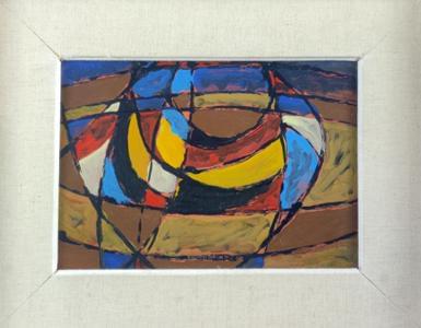 Abstraction, huile sur isorel, datée 1960, 19x29 cm