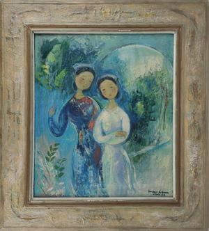 Rencontre de dames, huile sur toile, 50x61 cm