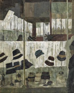 Magasin de chapeaux, huile sur toile, signée, 83x65 cm