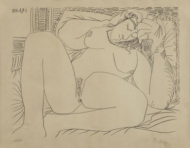 Femme nue, lithographie sur vélin d'Arches, numérotée 45/250, si...