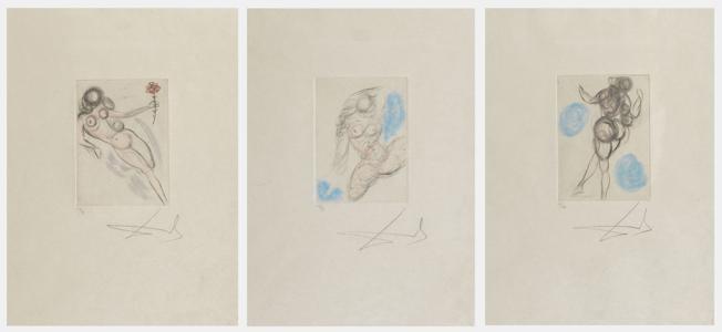 Suite de trois nus de femmes, gravure sur papier japonais, signé...