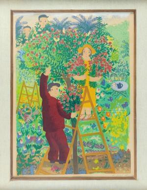 La cueillette des fleurs, lithographie, signée et numérotée 427/...