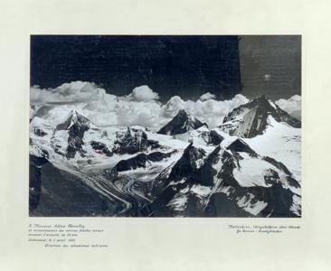 Vue aérienne du Cervin et de la chaîne des Alpes valaisannes, ti...