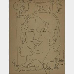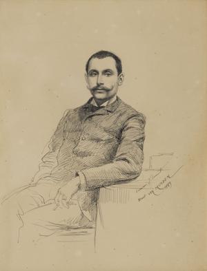 Portrait de J. Dunant, encre sur papier, signée, dédicacée et da...