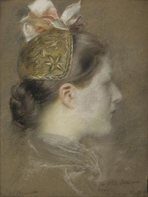 Portrait de Marie-Louise de Bogy, sanguine, craie blanche et fus...