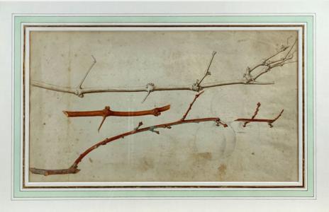 Etude de branches de pêcher, aquarelle et mine de plomb sur papi...