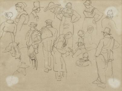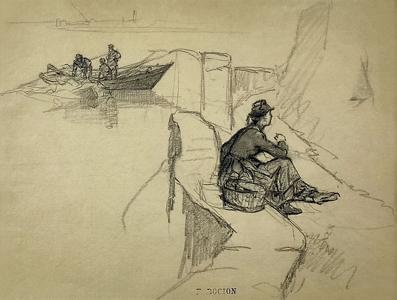 Etude de personnages sur le lac, fusain, 21x29 cm
